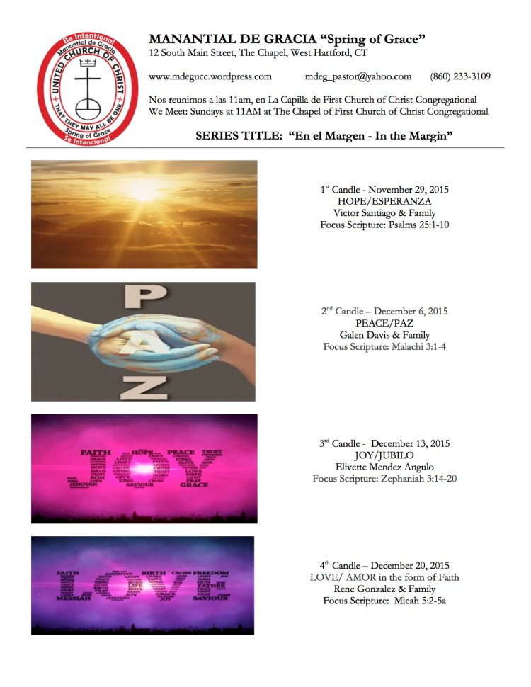 Advent – Adviento 2015 Publicado porPastor Maritzanoviembre 29, 2015diciembre 16, 2015Publicado en Uncategorized Comparte esto: Haz clic para compartir en X (Se abre en una ventana nueva) X Haz clic para compartir en Facebook (Se abre en una ventana nueva) Facebook Me gusta Cargando... Relacionado